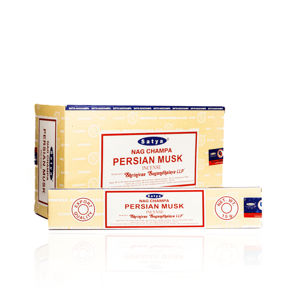Poznaj wyjątkowe kadzidełka Satya Persian Musk Nag Champa – połączenie kultowego zapachu Nag Champa z głębokim, orientalnym perskim piżmem, które tworzy ciepłą, tajemniczą i niezwykle otulającą kompozycję.