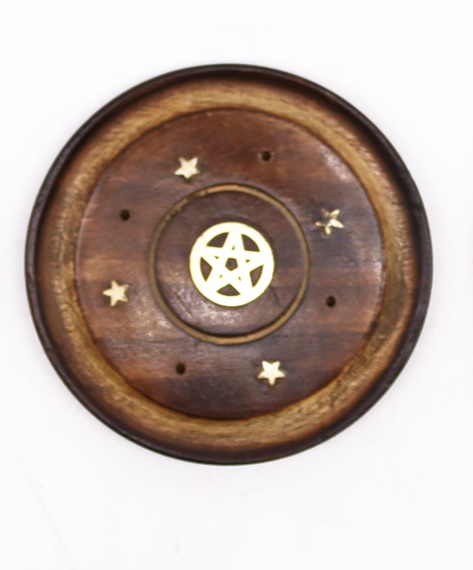 Okrągła Podstawka pod Kadzidełka z Drewna Mango Pentragram