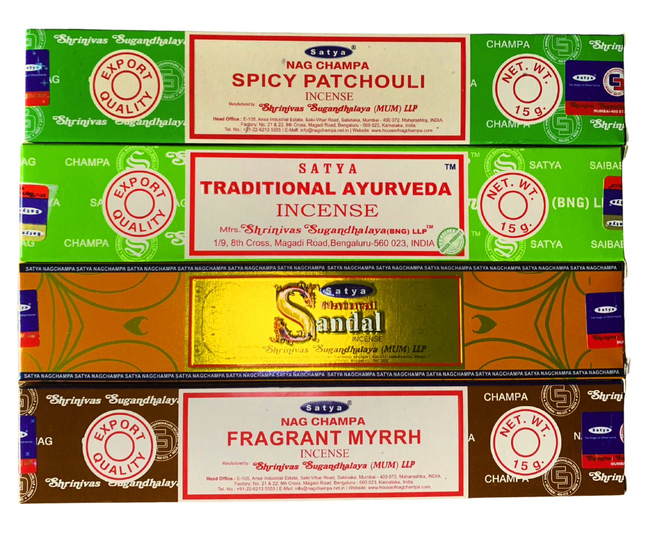 Poznaj wyjątkowy zestaw czterech oryginalnych kadzideł Satya Nag Champa 15 g, stworzony z myślą o miłośnikach zapachów, medytacji i harmonii. Każde z nich to ręcznie zwijane kadzidło z naturalnych składników, olejków i ziół, tworzone w Indiach – ojczyźnie aromaterapii i duchowych rytuałów.